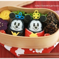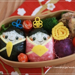 キャラ弁*ミッキー&ミニーのお雛様♪ 2012-3-1 記事を読む おはようございます^^昨日作った太郎の園弁です。今年はまだ1つもひな祭りのお弁当を作っていなかったので「お雛様でいい?」って聞いたら「ミッキーとミニーね!」って^^昨年も作ったミキミニ雛を作りました♪深さのあるわっぱに詰めるのが難しかった~(>_今回はピック