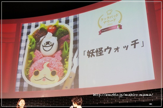 キャー!私のキャラ弁の画像がでっかくスクリーンに!