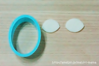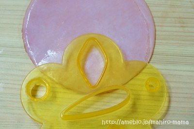 4.耳の内側の分部はハムを型で抜いて半分にカット。