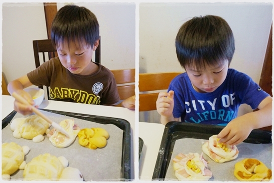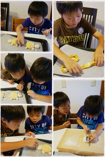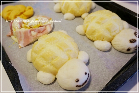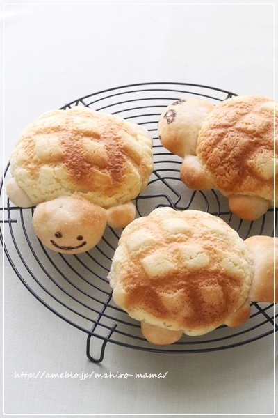 ブリオッシュメロンパンは小麦の匠で顔と手足を付けてカメの形にしてみました。