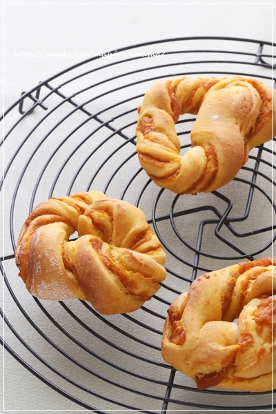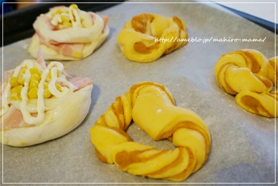せっかくなので小麦の匠はハムロール、かぼちゃパンはかぼちゃあんを入れてねじねじパン。