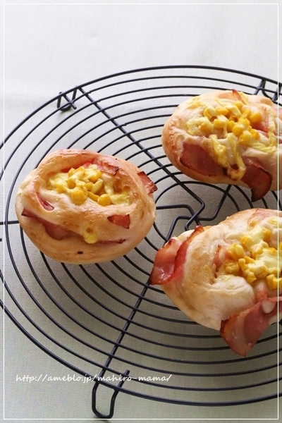 ハムロールは卵を塗って、コーンとマヨネーズをトッピング。