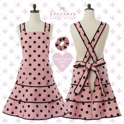 Amebeaute さんのピンク地ブラックドットスイートティアードクロスエプロンを