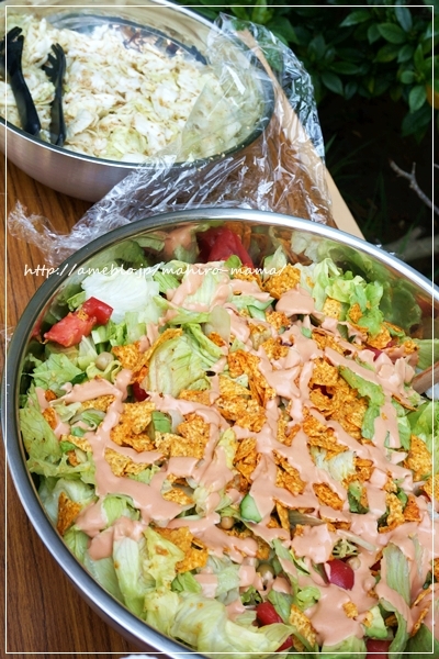 BBQは昨年が好評だったからと引き続き、サラダ担当。