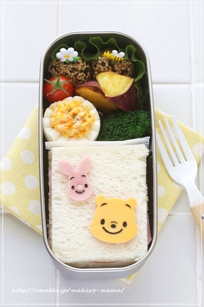 簡単にチェダーチーズ&ハムを型抜きして作りました^^