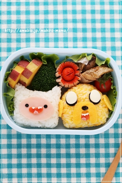 アドベンチャー・タイムのフィン&ジェイクのキャラ弁です。