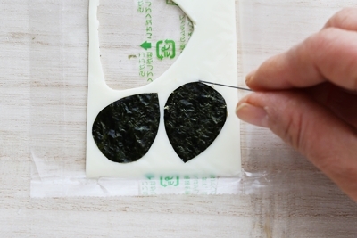 8.海苔で顔パーツを付けます。