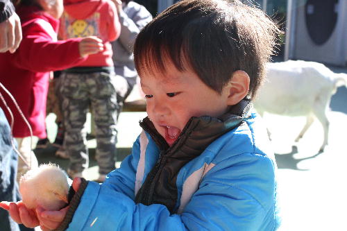 太郎はひよこやモルモットと触れ合って喜んでました♪