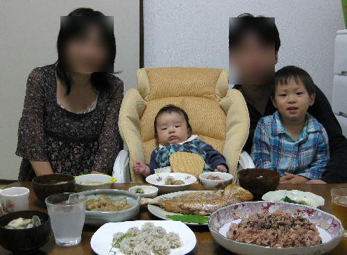 家族みんなで記念撮影をして、パパが食べるマネをさせました。