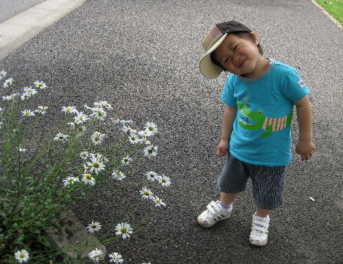 今日、お散歩中に「ママ~、きれいなお花と写真撮って」ってリクエストされて撮った1枚。