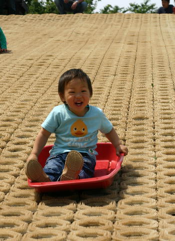 入るとすぐに芝すべりがありました。早速チャレンジ。
