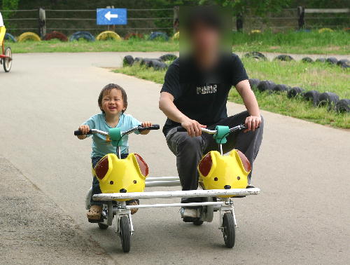 太郎は自転車は漕げないけどパパと一緒にとっても楽しそう。