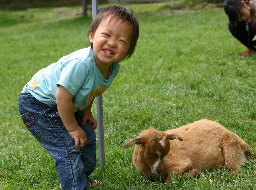 ちょっと大きなヤギや羊は怖いって言ってたし。