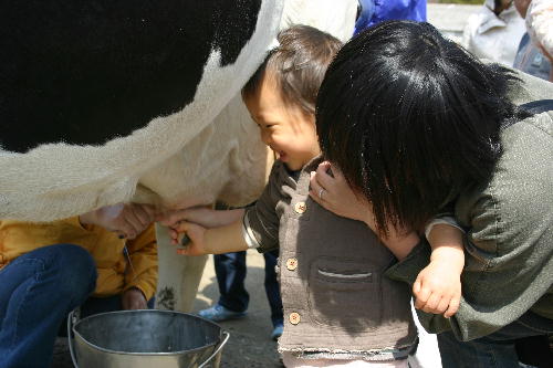「ぎゅうにゅうがピューってでたね!」と大興奮。