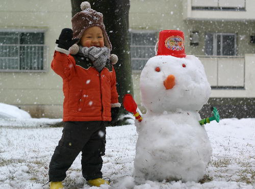 パパが雪だるまを作ってあげると、これまた大喜び。