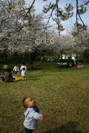 風に桜の花びらが舞ってキレイでしたいつもは食いしん坊のまひろも今日はお弁当よりも遊びたくてしょうがないみたい。