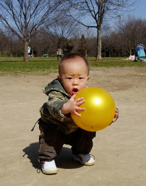 太郎がボールを置いて、遊んでいる間にボールがなくなっちゃった。