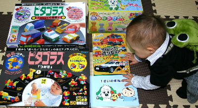 太郎自信はお誕生日なんて分からないだろうけど、たくさんのおもちゃがもらえてうれしそうでした。