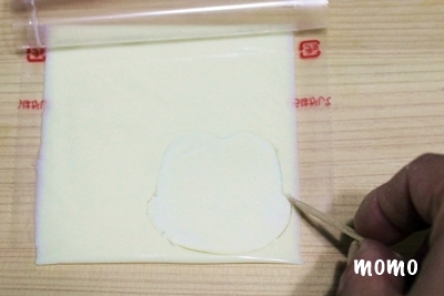 6.顔部分の型紙を作り(ミキミニ共通の型紙でOK)、スライスチーズの上に貼り、