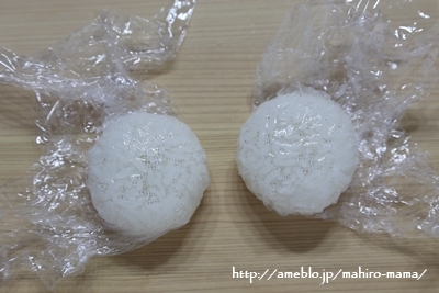 1.ご飯を50gずつ、ラップの上に広げお好みの具材を入れ丸いおにぎりを作り塩を振る。