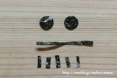海苔で顔のパーツを作る。細い部分は刻み海苔を使うと簡単。