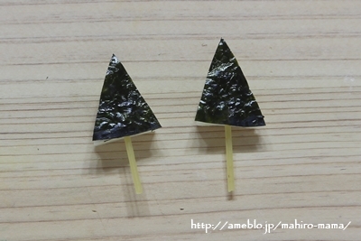 海苔を耳の形に切り貼り付ける。