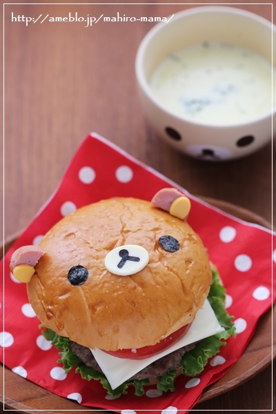 撮影用の残ったバンズでリラックマバーガーを作りました♪
