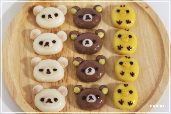 リラックマファミリーの白玉団子を作りました^^