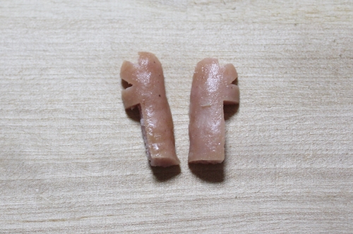 4.ボイルしたポークビッツを写真の様にカットします。