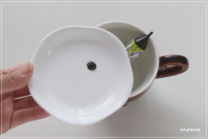 チョコペンは60度のお湯を入れたマグカップの中で湯煎して、