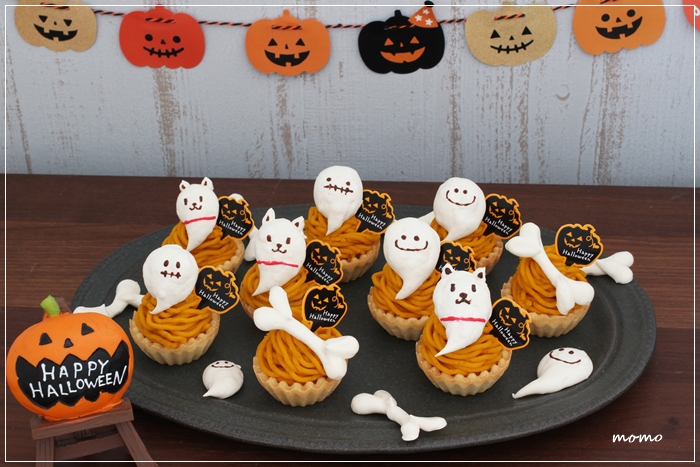 今回はメレンゲクッキーのお父さんをデコしたかぼちゃのモンブラン♡