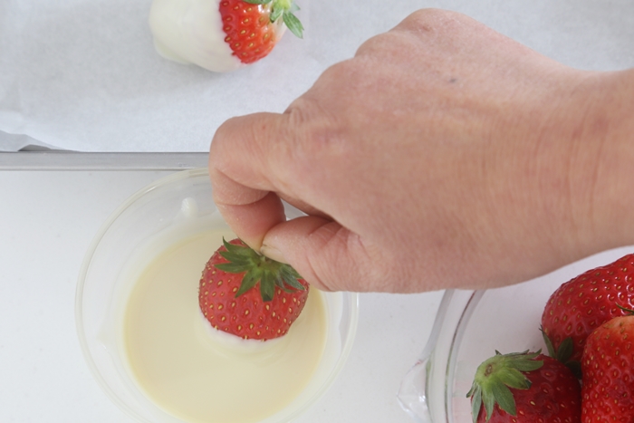 見たまんま、いちごにチョコを付けるだけなのですが