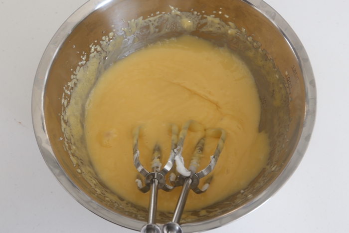 5.4に2の半量を加えて混ぜ、 2に戻してムラなく混ぜる。