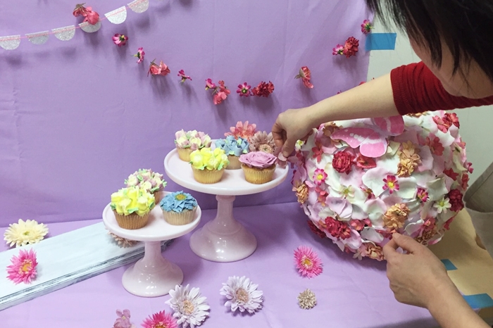 カップケーキを焼いている間にデコレーションのデモも。