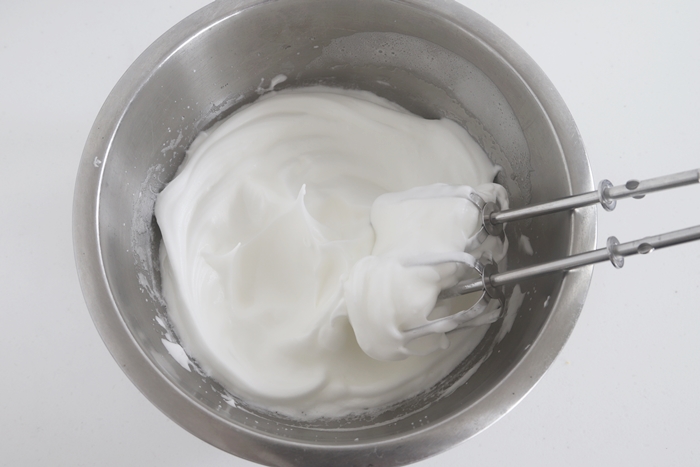 その間に生クリームに砂糖を加え泡立てておきます。