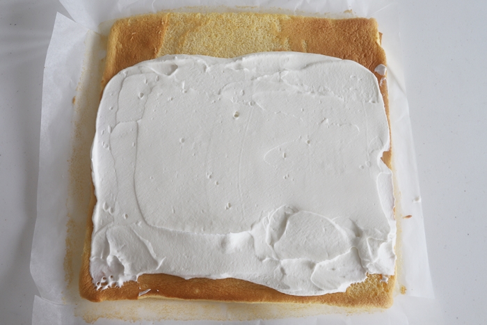 生クリームの3/4を全体に伸ばします。(残りはデコに使用)