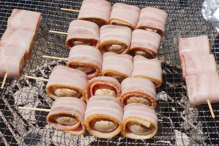 マッシュルームにクリームチーズを詰めてベーコンに巻いて焼くだけらしいのですが