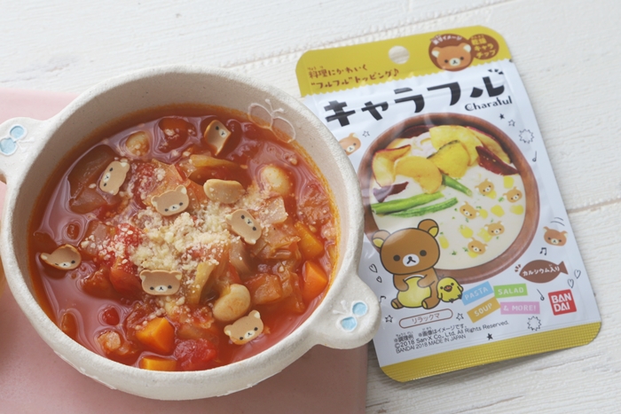 ミネストローネにはキャラフルを浮かべて。