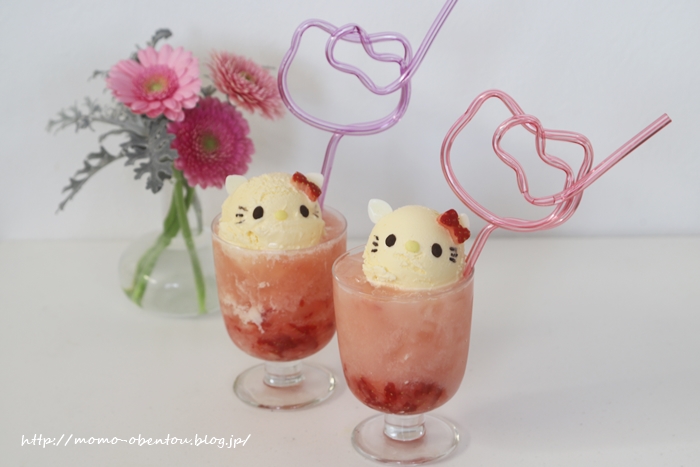 キティちゃんのアイスを浮かべたフロート。