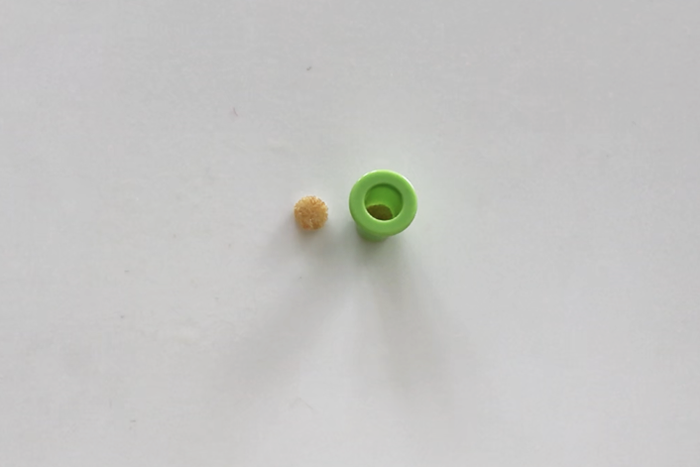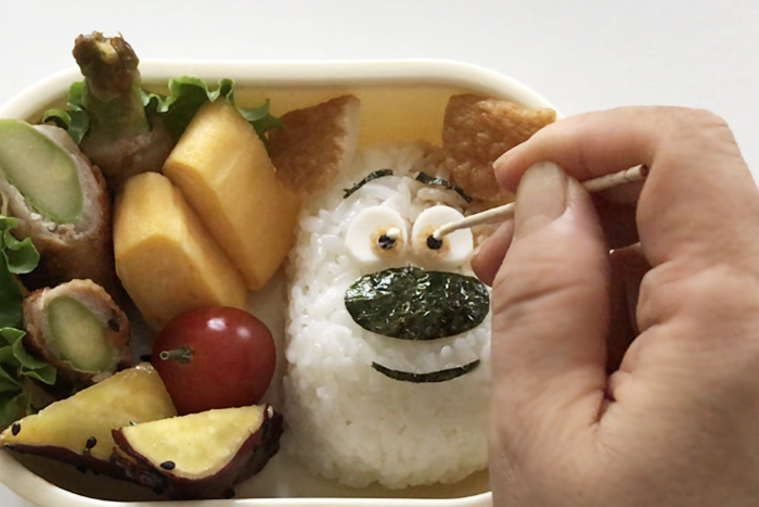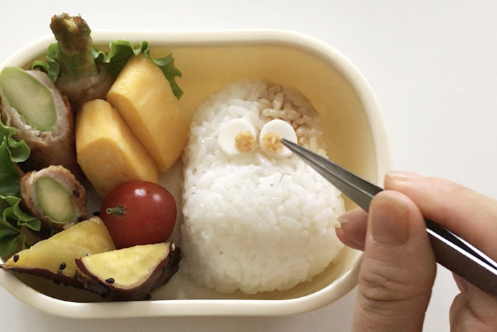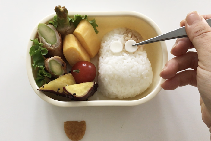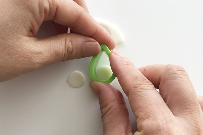 4.かまぼこをしずく型で2度抜きして目を作る。