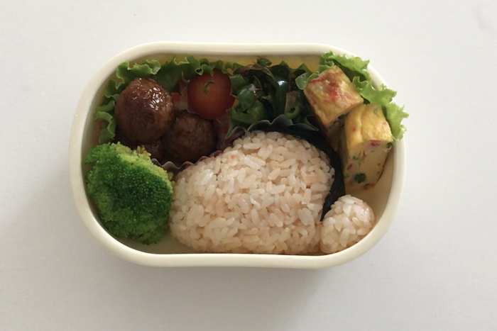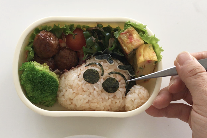 5.お弁当箱の中で顔と耳を合わせおかずを詰める。