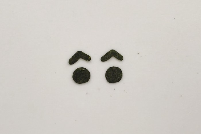 6.海苔を顔の大きさに合せ、二つ折りにして眉、目をカットする。