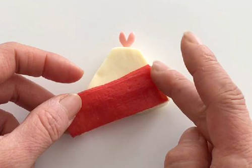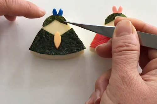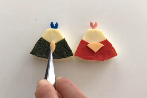 お雛様の着物はかに風味かまぼこの代わりにハムなどでも代用可能です。