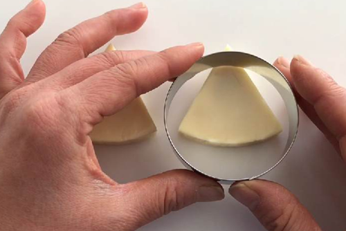 1.三角チーズの先端部分を丸型で抜く。