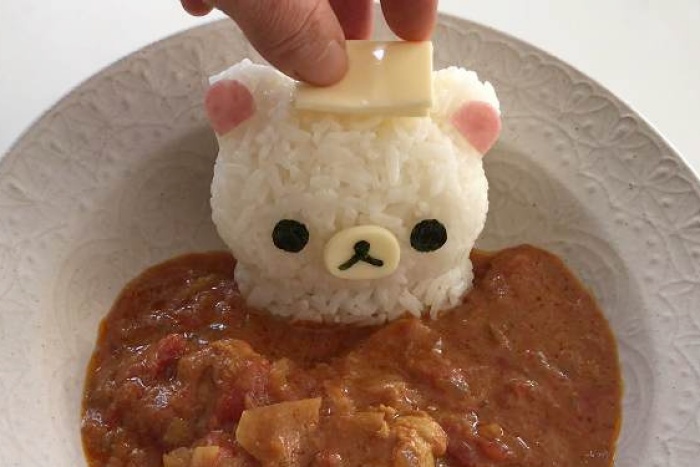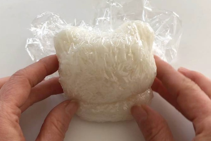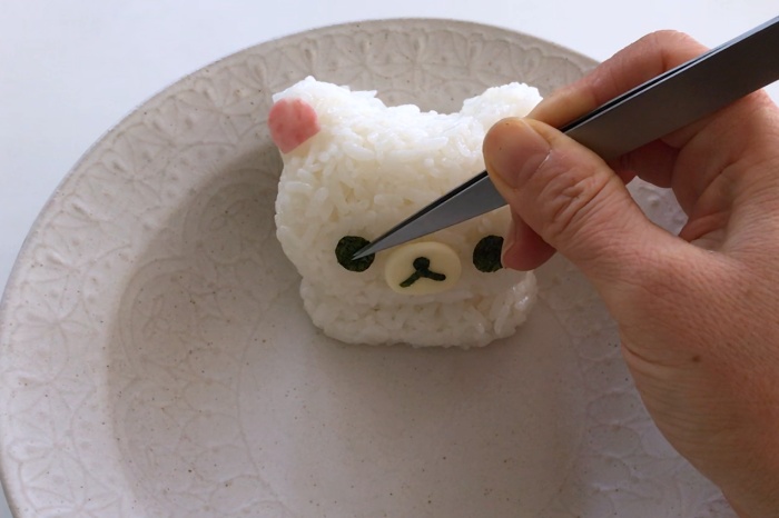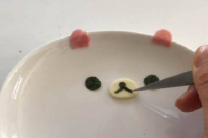 7.チーズで作った鼻周りの上に鼻、口を貼り付ける。