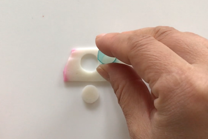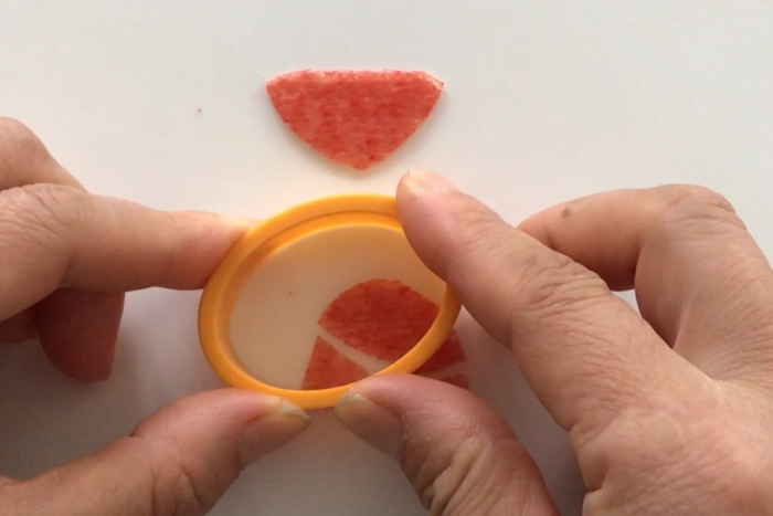かに風味かまぼこはナイフ出来るとバラバラになりやすい為、型で抜いています。