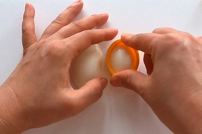 顔を握る時はやや横長の丸形に。