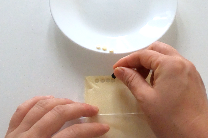 5.スライスチーズをストローで抜く。耳用に2個、鼻周り用に1個。