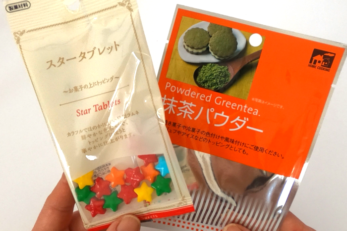 抹茶パウダー、星型タブレットもセリアの物を使用しています。
