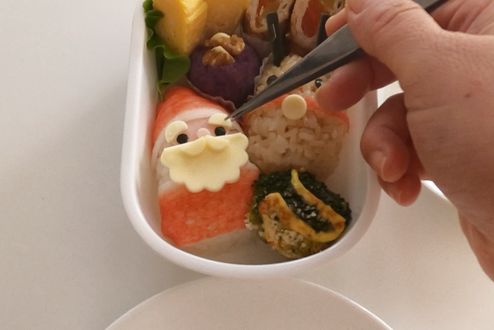 海苔を貼る際は先端を湿らせた竹串、またはピンセットを使用すると付けやすいです。